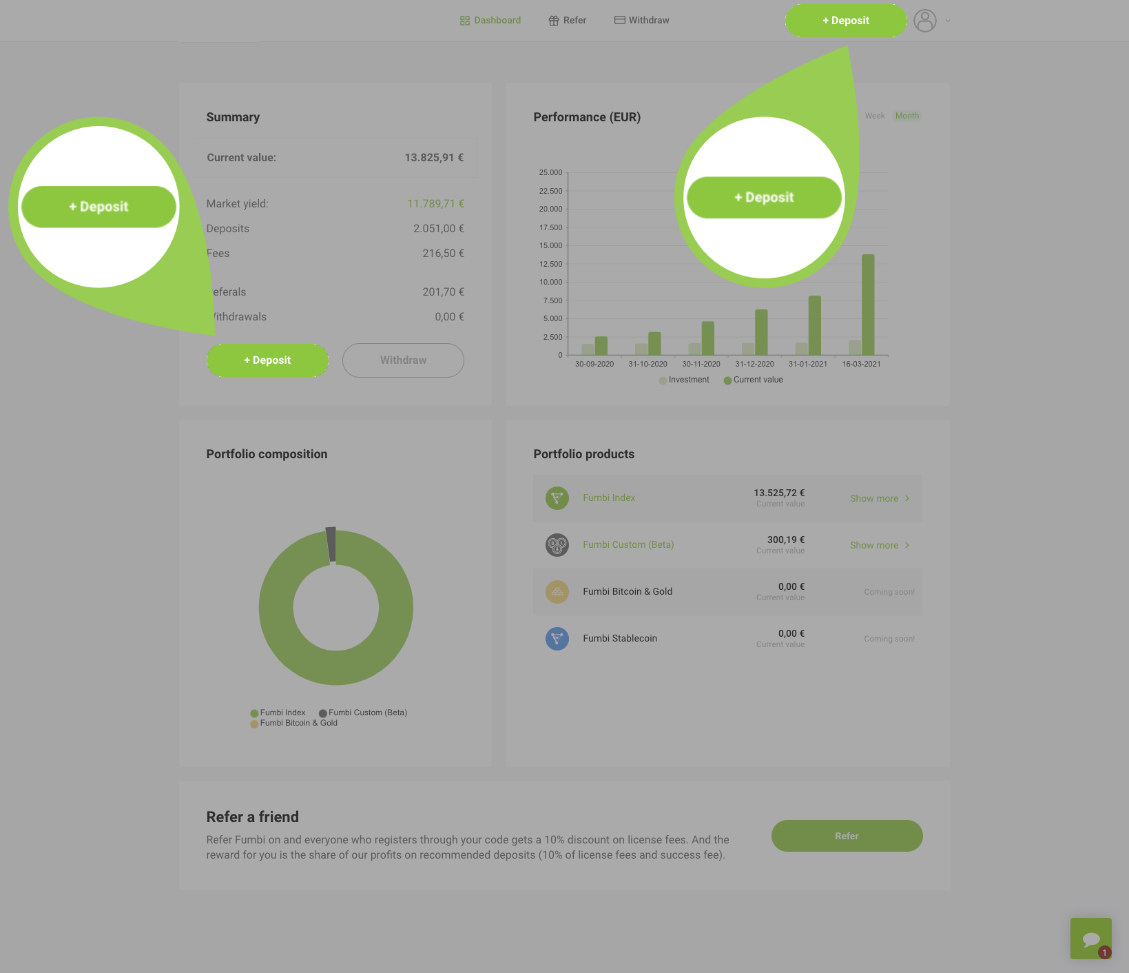 You can make a deposit also after opening the details of individual products.